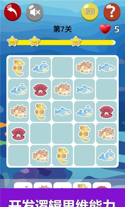 目前包含森林,浅滩,深海3个不同主题,包含3x3,4x4,5x5,6x6等多种玩法,共计200多个关卡。最重要的是所有内容都是免费的。