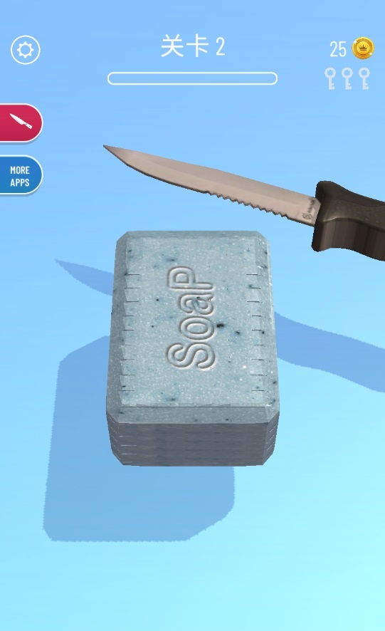 这款游戏的自由度是非常高的,玩家能够在游戏中释放心中压力,游戏的画风非常的简约,让玩家可以拥有很好的视觉感受和操作手感,每一关中出现的肥皂颜色和样式都是不一样的,随意的切割并且打发无聊时光吧。