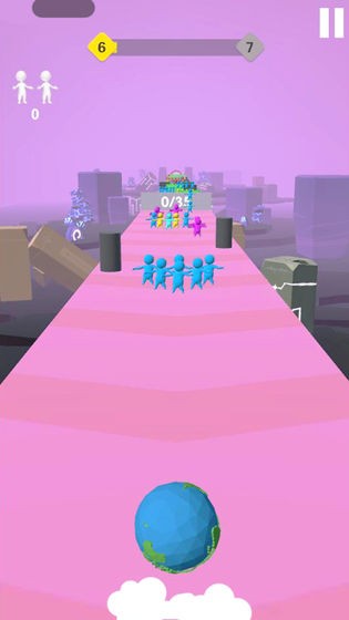 通过能粘在一起的玩法让道路上小人挨个的粘在一起进行滚动。