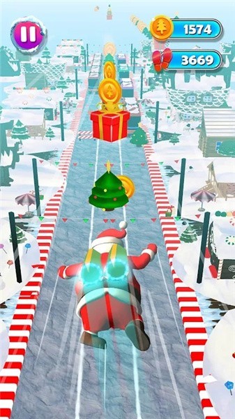 3、圣诞老人跑者还要控制自己的前进方向,及时躲避同时收集道具也很重要。