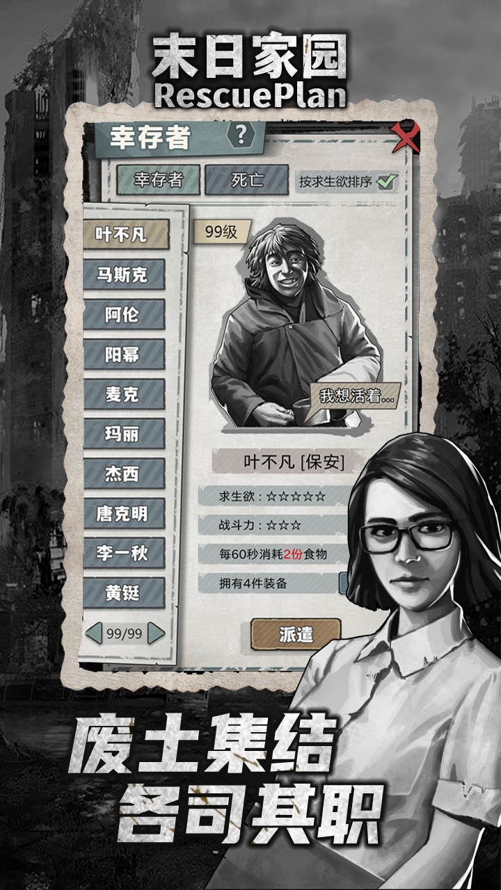 集结队友幸运的是,这个城市还有其他的幸存者,你可以逐步找到他们,壮大幸存者队伍。