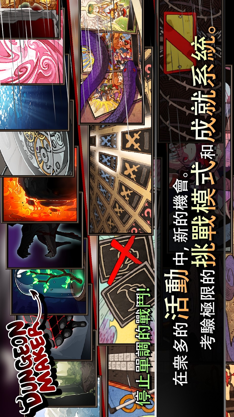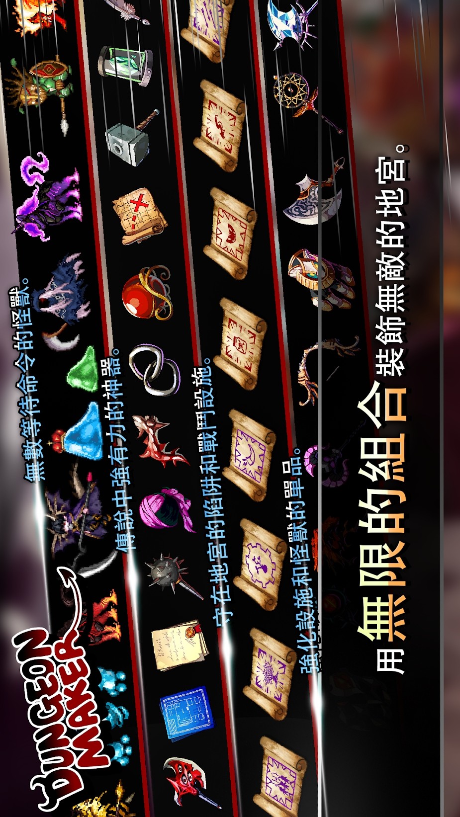在地宫布置各种陷阱和设施,并雇佣可通过战斗成长的怪兽,发现神秘力量的神器,击退攻击地宫的勇士!