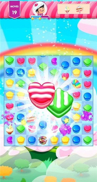 1、可爱的画面和舒缓的音乐,你可以快乐地粉碎糖果,感受思维消除的乐趣。
