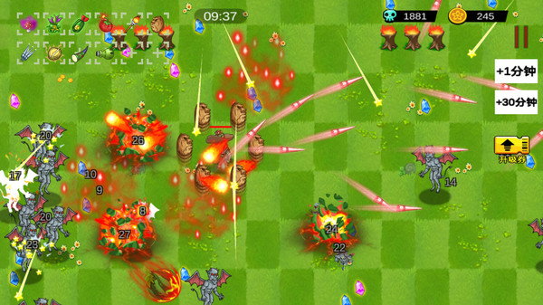 游戏玩法看似简单容易,但随着挑战的进行,也会有更强大的吸血鬼出现,考验大家的策略。游戏中也会有各种道具,合理使用,可以快速帮你消灭各种吸血鬼。游戏中会有很多任务让你去完成,通关后还能收集到很多新的植物。