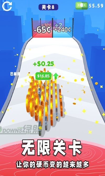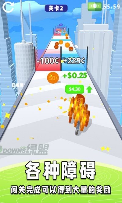 2、玩家们需要在游戏中控制自己的金币不断的向前奔跑,