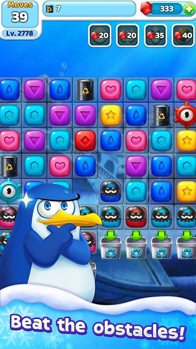 企鹅比赛3最新版是一款以消除为主的全新闯关休闲益智游戏但是获得的积分就会更多,帮助皮特净化海洋,勇敢的Penguin Pete很难自己清理所有这些油,如果对这款游戏感兴趣的话就快来一起试试吧。