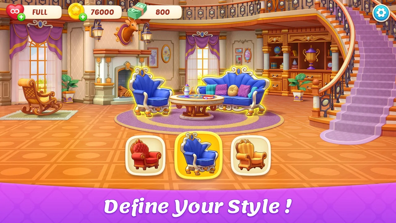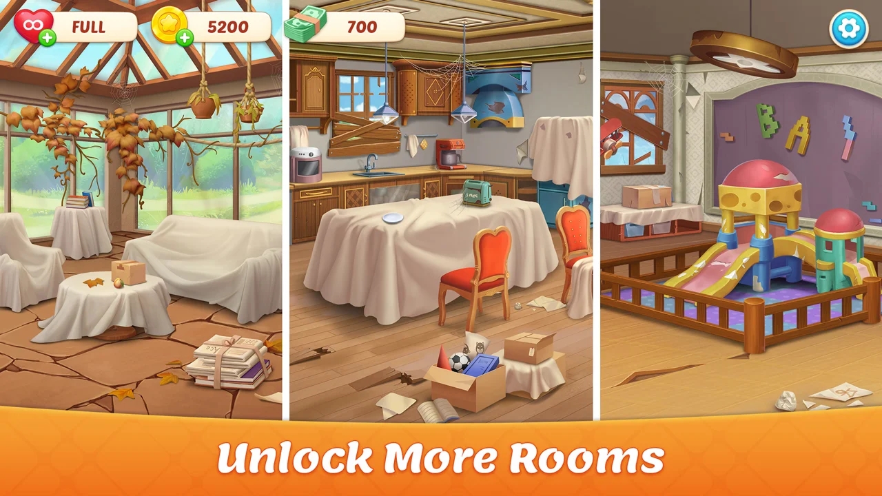 爆破彩色糖果关卡以解锁房间,以您自己的风格进行翻新!