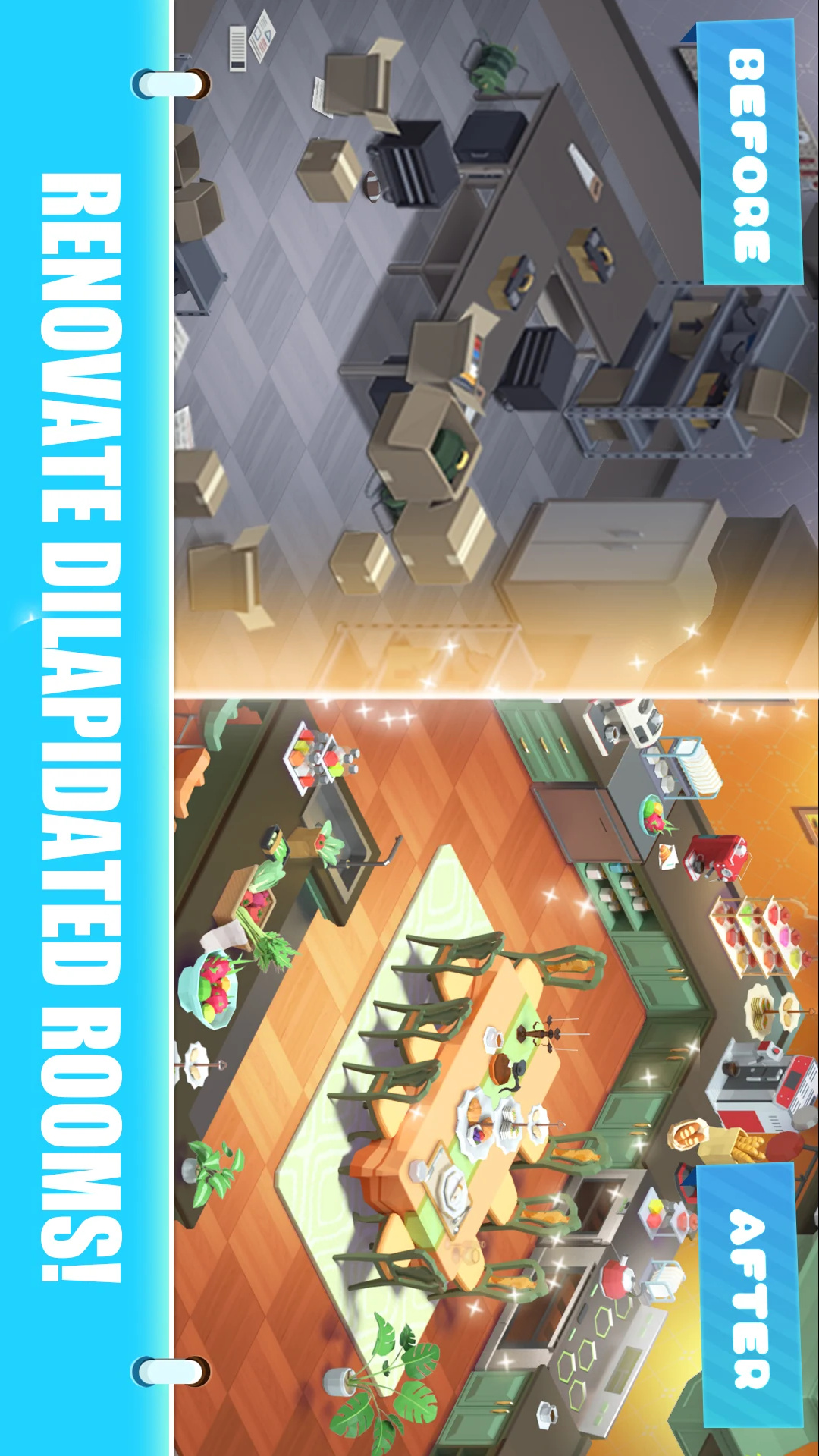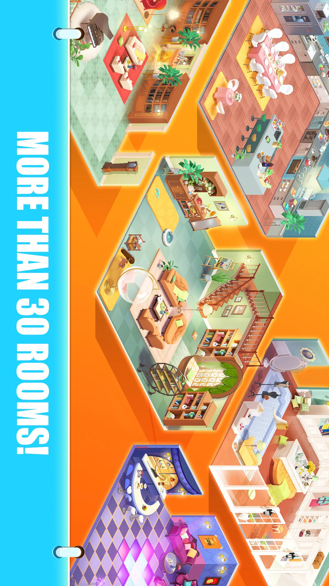 在这个游戏中,你可以收集、合并、建造你的理想房屋,以你的风格装饰所有吸引人的房间,并通过保持不同级别的家具收藏来实现你的豪宅梦想!