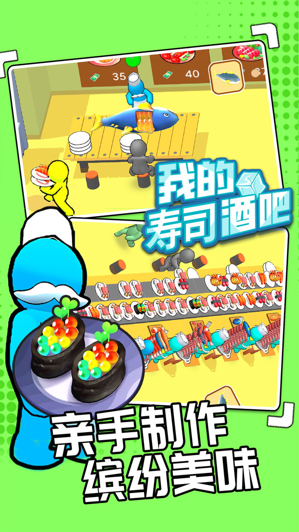 在这是以寿司为主的玩法贯穿了整个游戏,你将要制作美味的寿司去吸引顾客们的眼球,并且有着各种珍惜的菜单让你们去解锁的并制作出来口味必须要符合顾客们的要求,才会有小费收获。
