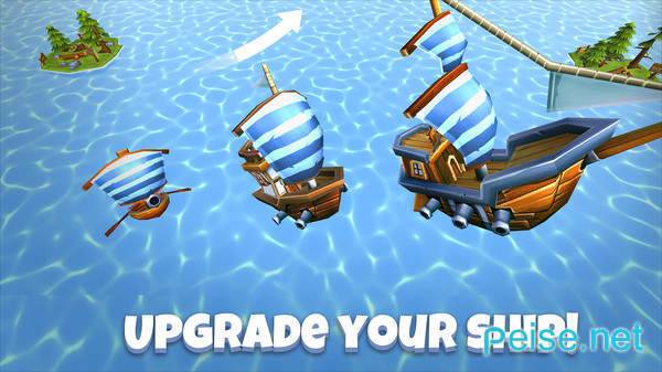 丰富的船只等你升级,趣味的游戏玩法,你可以随心所欲的装饰你的船只。