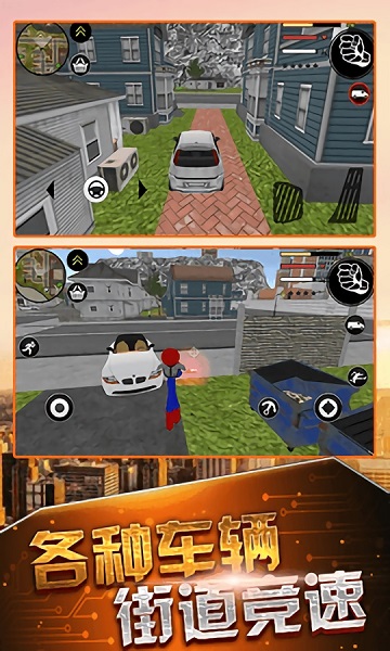 1、游戏玩法简单,玩家可以轻松控制火柴人在城市中冒险,消灭各种各样的邪恶势力,体验有趣的冒险乐趣。