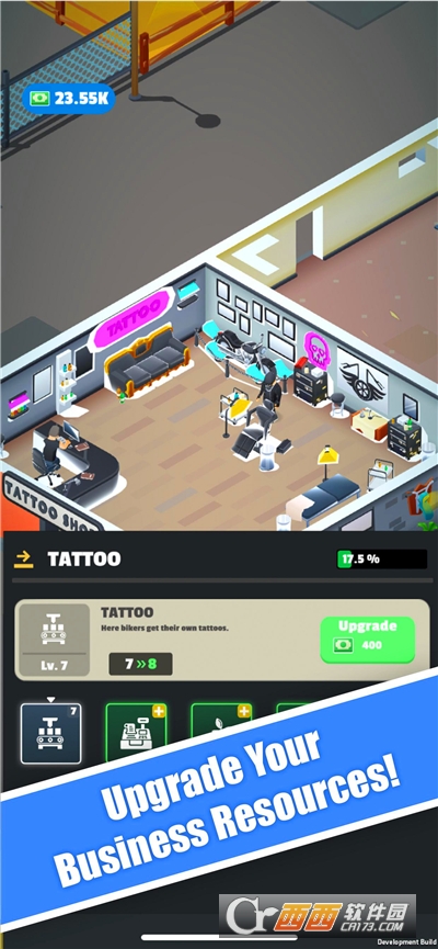游戏的玩法轻松,一根手指就能够掌握,画风精美 华丽,有着惊人的图形,简单的操作方式,为大家带来了不同的经营乐趣,让你在这里发挥自己的才智,不断地升级,建立你的摩托车俱乐部王国!