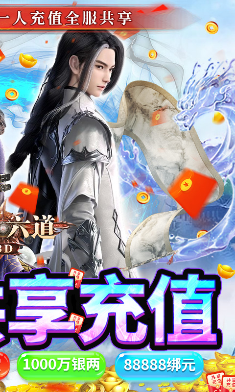 ★达到目标等级,可领取千元真充和万抽寻宝令,登录领取VIP2538888元宝、88888绑元、1000万银两!