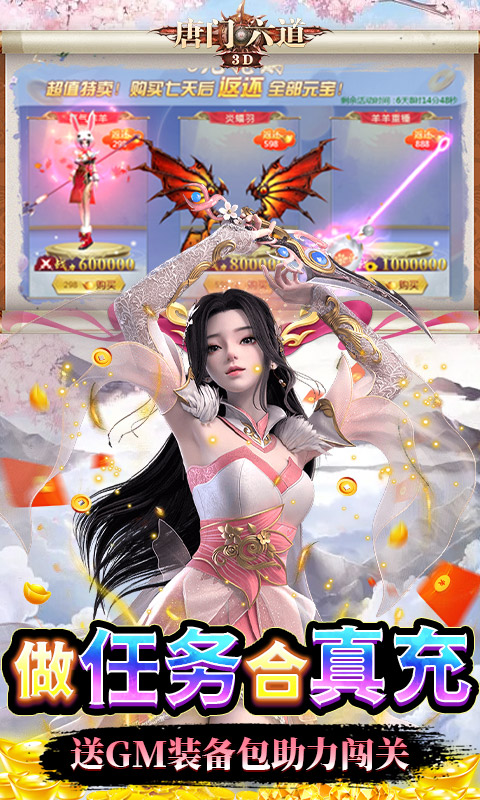 ★一人充值,全服共享、做任务合真充,送GM装备包助力闯关、海量资源助你轻松游戏!