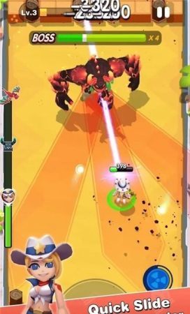 平滑的虚拟操纵杆控件可让您随意躲避和滚动。避开子弹,使其时尚!