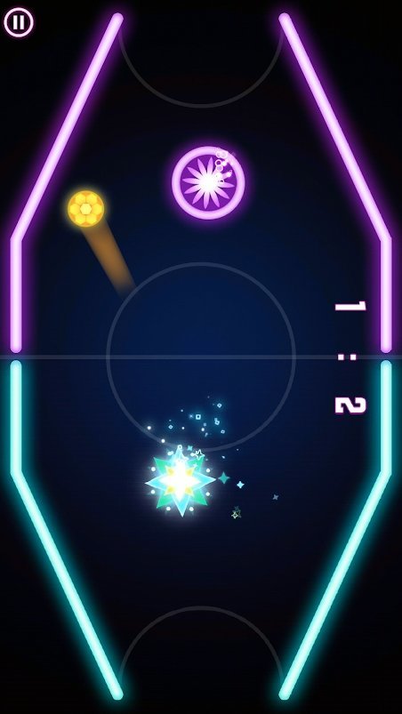 3、使用霓虹灯操作飞盘,运球,轻轻地将白球打入对手的球门。