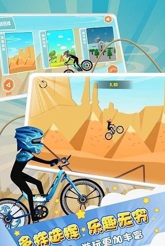 1、游戏为无尽模式,玩家将要操控不同的英雄们进行各样的赛道挑战,越过层层的障碍,尽享自行车特技的本站魅力;