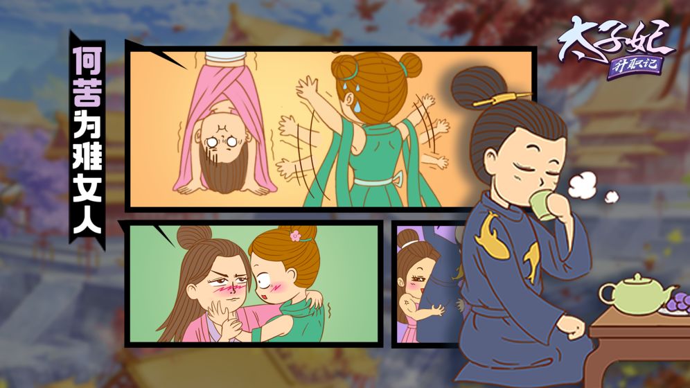 宫廷美景描绘,细腻笔画,华丽套装选择,打扮出最美丽的造型,体验女人的不容易。后宫乱斗,赢得宠爱。