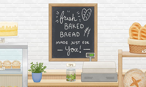 简洁的游戏画风看起来十分干净,面包也都整齐的摆放在柜台里面,显得干净和美味慢慢