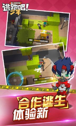 通往胜利的逃生门已经大开,快快和队友合作阻拦后面追捕的少年进行逃脱,多个道具武器随机捡取可以让你进行边逃脱边进行射击战役