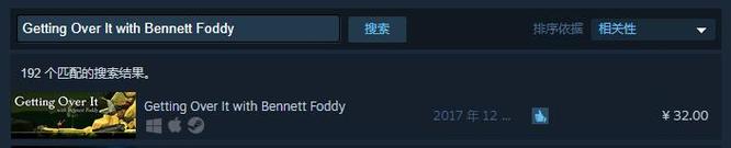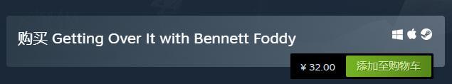 steam上的掘地求生的价格为32元人民币,我们可以进入Steam搜索这款游戏的英文名Getting Over It with Bennett Foddy,点击进入游戏界面。