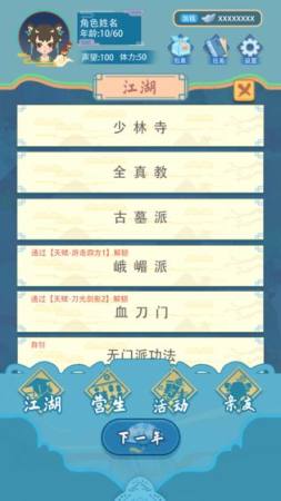 玩家可以丰富的地图要素,造访这个时代的各种特殊地方,在地区中尽情展开自己的探索,寻找多种宝物完成自己的养成大战,玩家可以自己选择自己想要体验的人生,以不同的门派和职业来展开自己的江湖之旅。