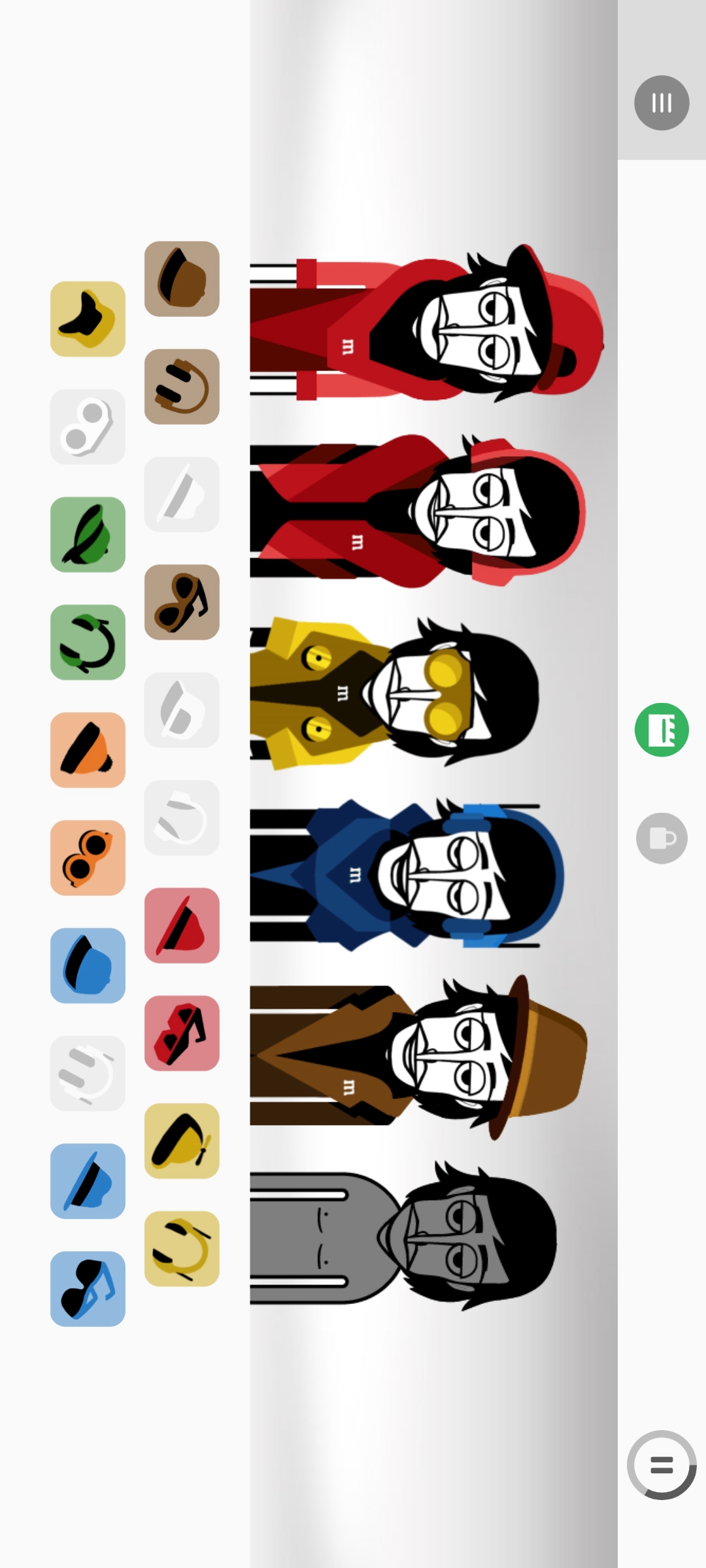 游戏风格独自成一派,源自一个玩B-BOX的音乐网站,通过录制的方式分享给他人,没想到出了移动端,操作也很简单,直接拖动不同颜色的装饰物(乐器)给人物戴上即可,自行编奏一首嘻哈曲,玩着蛮上瘾的,很有节奏的鼓点,有种在打碟的感觉。