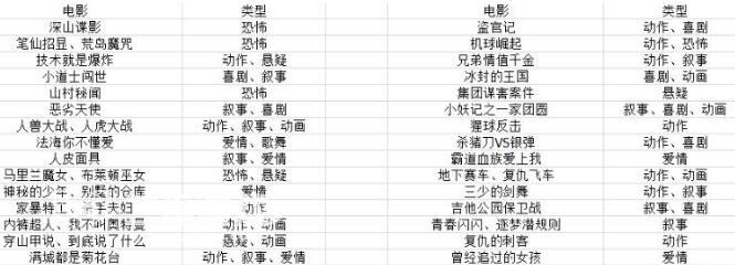 一、电影类型攻略: