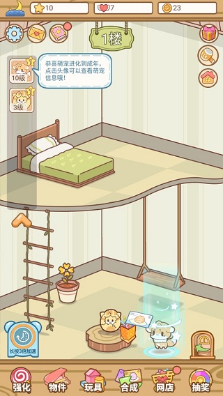 萌宠养成物语手游是一款清新治愈系模拟类休闲游戏,各种各样的可爱宠物我们都可以去喂养,每天悉心的照顾宠物们的日常生活,如果能的宠物不小心着凉生病了还要会给它们看病,其实宠物成长阶段是非常麻烦的。同时还可以选择不同的宠物蛋进行孵化培养,并且还能去布置房间,通过增加不同的装饰来提升萌宠进化的效率。