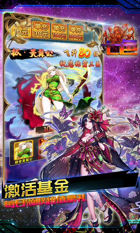 《七色(0氪送神权)》是款游戏以三国为游戏背景。 玩家出生在三国时期的疆场上,为了守护主公安全,与各路势力展开激战,组建属于自己的小队,带着伙伴砥砺前行,游戏玩法新奇,上线送至尊V、千万元宝、千万银币,登录就送千元真充卡,无限资源福利多,激活每日可无限领取资源,每日完成活跃度,豪礼0氪拿,0氪也能玩到爽。还等什么,快来开启旅途,创建属于自己的小队。