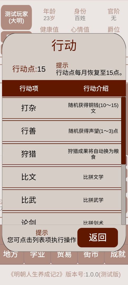 明朝人生养成记2是一款模拟、经营、养成玩法的单机文字游戏。这里会带来很丰富有趣的文字模拟玩法,大家可以自由参与到其中,面对到各种不同的玩法挑战,开启你的独特人生吧。