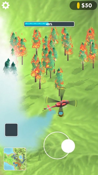 被消灭的火灾面积越大,得到的金币就越多,可以升级自己的救援直升机。