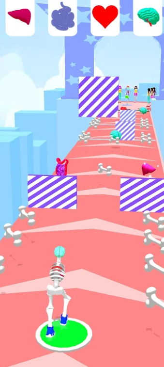 通过收集路上的骨头棒,逐渐拼凑成一个人类的雏形,但小心不要撞到路上的障碍