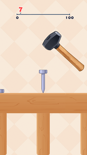 百米钉钉是一款非常有趣解压的在线休闲小游戏,游戏中玩家需要不断地将钉子钉进木头中,每次将钉子钉入的次数有限,如果多钉会导致木头碎裂从而导致游戏失败,比较考验玩家的反应能力,游戏中每颗钉子的次数在2-5次不等,玩家需要瞅准时机放手才可以,非常的有趣,感兴趣的小伙伴和有需求的小伙伴欢迎在本站随时下载游玩。