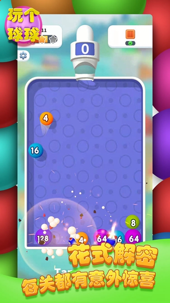 玩个球球是一款休闲的益智娱乐类游戏,游戏有着创新的玩法,玩家通过不断发射球球,来让球之间合成2048,游戏玩法十分有趣,十分适合在闲暇或者是等待之余来上一把 ,喜欢的赶快来体验吧。