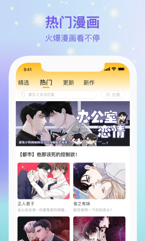 4.热门漫画,全网精品实时更新,超全类别热门IP漫画随心看。