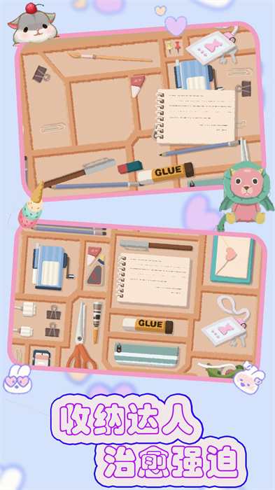 2.卡通精致的物品建模,唯美的收纳场景设计,轻松愉快的背景音乐,让你可以沉浸在游戏的治愈效果中。