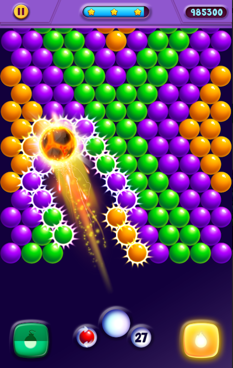 连续弹出7个气泡,得到一个FIREBALL,它将燃烧途中的每个气泡