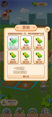 大米刷刷乐广告版,由西安强引力科技有限公司研发打造的一款种田模拟游戏。开局一块地,你可以在地里种植各种稻谷以及其他的农作物。等待农作物成熟,即可领取到丰厚的奖励啦。