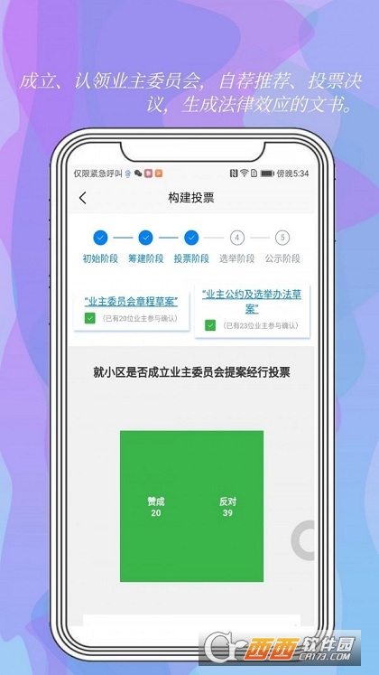 成立、认领业主委员会的线上流程,其他重大决议的发起及参与,自荐推荐、选举投票、决策决议;