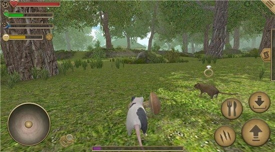 1.提供了高度真实的老鼠模拟体验,时刻关注自己的体力、口渴和生命值,避免老鼠死亡。