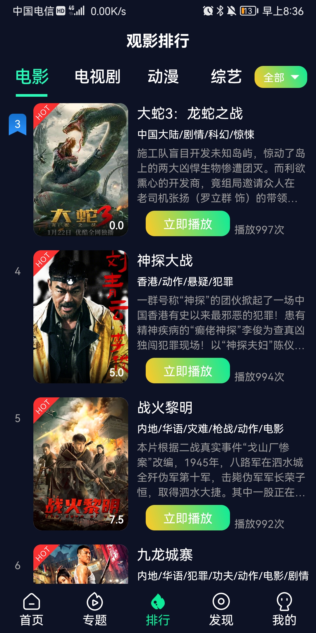 2、用户可以直接在软件中单击自己喜欢的电影和电视剧观看,并且里面的电影和电视剧是免费的;