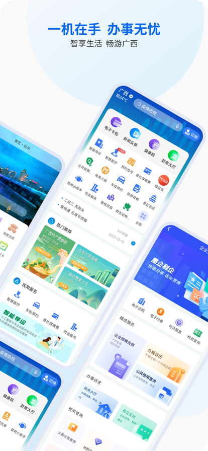 1、是广西本地政务服务软件,包含政府办公游客旅游民众生活等一系列服务;