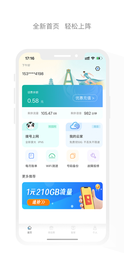 1、特色功能及优惠活动:充值享优惠,流量半价抢、分享得流量、签到送积分等各类主题促销活动。