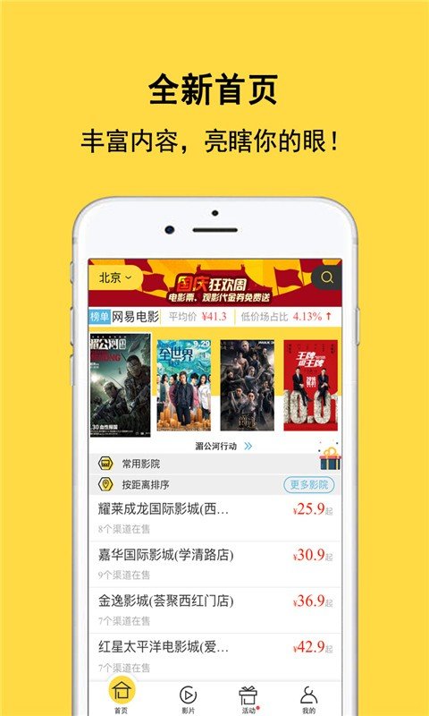 3、拥有全国在在线选座的全量影院;影片日历让你随时掌握热门影片的观影时间;全国低价实时票价让你一目了然!