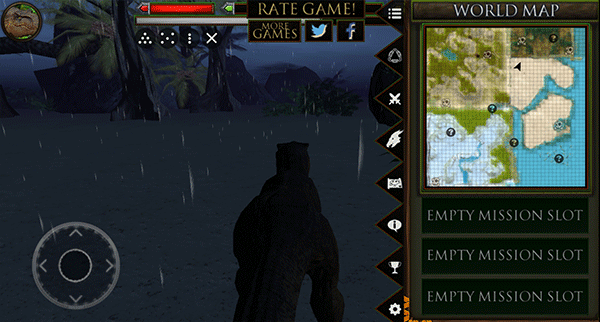 (三).进入游戏后,玩家可通过左下方的轮盘键控制移动,右下角的按钮分别为加速、撕咬、声吼。