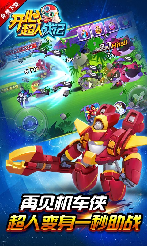 无限制连击格斗手游《开心超人战记安卓版3.0》炫酷来袭!正版IP授权,高度还原动画剧情和人物角色,结合各种趣味任务设计,打造一个大不一样的星星世界。正义小伙伴快来帮助开心超人保卫家园,控制着开心超人去进行着冒险和战斗吧,感兴趣的玩家们快来下载去战斗吧。
