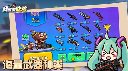 我就要吃鸡2023是MOBA竞技类手游。游戏和吃鸡的玩法比较像,玩家选择喜欢的角色在战场中进行冒险,游戏过程中通过合成逼真上百种枪械、独一无二人宠战斗系统,不断的强化自身的能力,活到最后的就能获得胜利,可以通过金币去点击出等级不同的枪械,解锁经典特色英雄,并且不断提升战斗乐趣。