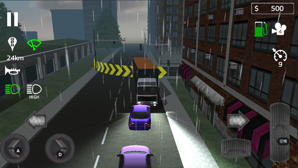 三.解锁更多的汽车,升级它们的性能,逼真的天气模拟,小心狂风暴雨的来袭。可以将触摸按钮,转变为重力感应装置,倾斜手机转弯,就像握着方向盘开车。