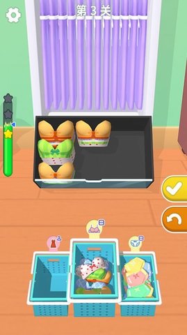疯狂收纳师是款这里收纳玩法的小游戏,游戏里每一关都有着各种物品需要去整理,将篮子里的每一件物品来放置到橱柜里,合理的运用橱柜里的每一个夹层空间,十分的解压轻松,一起来试试吧。